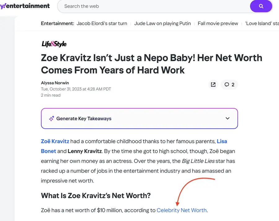 - Please note that the two websites currently being credited for the $10 million number are purewow.com and a Life&Style article syndicated through Yahoo. Both articles reference and link to CNW as their source. This is what we see over and over in the AIO and AI Mode results.
