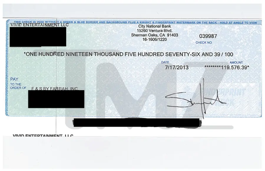 "Farrah Superstar: Backdoor Teen Mom" hit the world wide web on May 19th, 2013. Regardless of what her true intentions may have been, Vivid did end up paying Farrah a $1.5 million upfront fee for the rights to distribute her sex tape. On top of that, Farrah also negotiated a royalty arrangement that would pay her a percentage of the tape's profits after the $1.5 million advance had been earned back. Thanks to TMZ, which probably got its information from Farrah herself, we now know that her royalties are pretty impressive. Earlier today, TMZ released a photo of Farrah's first royalty check from Vivid. The check covers the first two months' worth of sex tape royalties. So how much did Farrah earn in royalties for June and July? $119,576.39. In other words, Farrah Abraham is earning $60,000 per month from her sex tape. Pretty impressive. And considering Vivid eventually earned a reported $77 million off the Pamela Anderson/Tommy Lee sex tape, maybe this is just the beginning?
