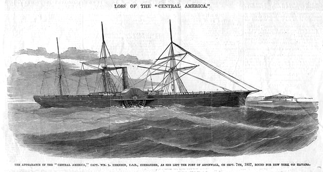 In September 1857, the sidewheel steamer SS Central America sank during a powerful hurricane roughly 160 miles off the coast of the Carolinas. The ship was traveling from Panama to New York carrying passengers, mail, and a staggering shipment of gold from the California Gold Rush. When the storm overwhelmed the vessel, 425 passengers and crew members died and thousands of pounds of gold disappeared into the Atlantic Ocean.